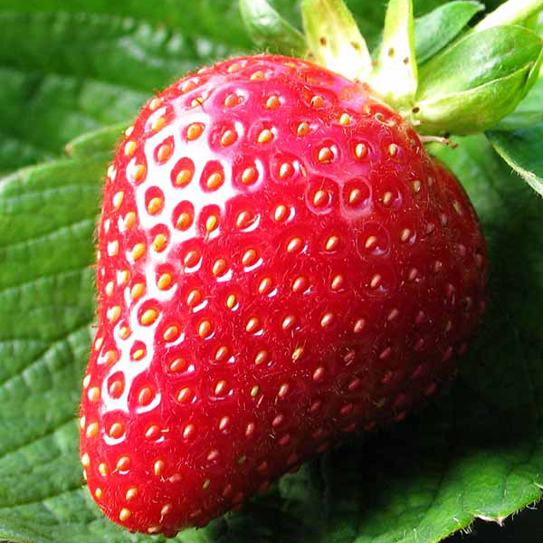 Плоды крупные, конические, вытянутые, массой 35-40 г. Кожица глянцевая, ярко-красная. Вкус сбалансированный сладко-кислый, при полной зрелости (окрашивание плода в темно-красный цвет) становится насыщенным, земляничным. Мякоть плотная, крепкая, но сочная и приятная на вкус. Транспортабельность и лежкость очень высокие. Урожай может свыше недели храниться при комнатных условиях и не испортиться.