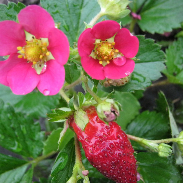 В общем, растение выглядит очень декоративно, может использоваться даже как почвопокровная культура, при этом земляничная лужайка, усыпанная розовыми цветками и красными ягодками, будет выглядеть очень интересно.