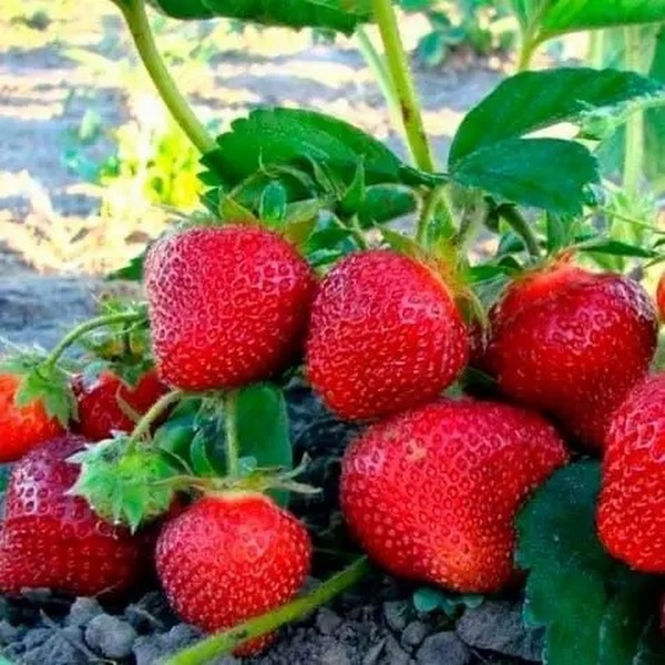 Ягода удлиненной формы, блестящая, темно-красная, очень вкусная и ароматная, крупная средней массой 35 - 50 гр и крупнее, транспортабельная. Главное достоинство сорта: после сбора урожая начинает выдвигать новые цветоносы и дает второй урожай, хотя сорт не нейтрального светового дня. Благодаря такой особенности сорт чрезвычайно урожайный.