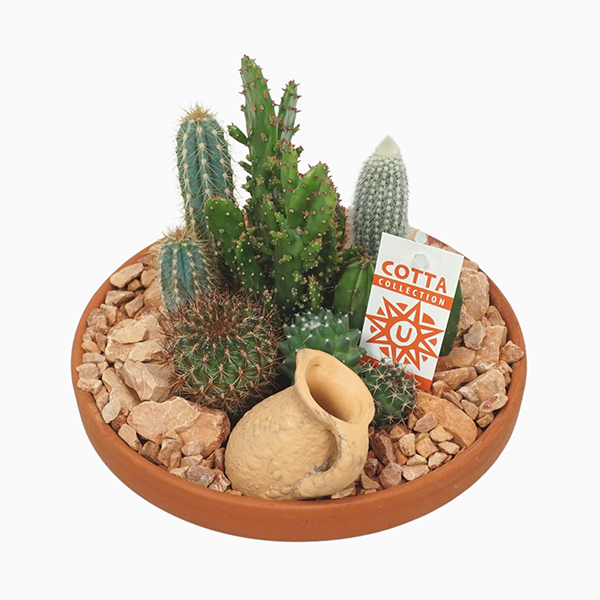 Декоративная композиция из различных видов кактусов, в керамическом горшке. Станет идеальным украшением вашего интерьера. Ассортимент уточняйте у консультанта.