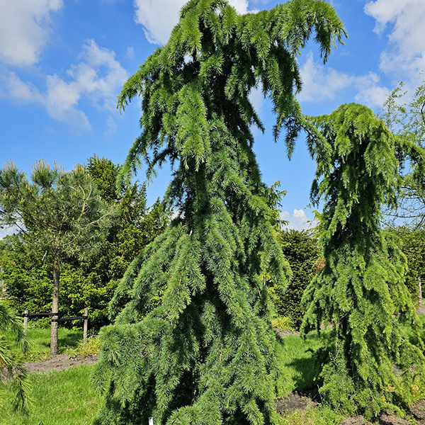 Кедр гималайский плакучий - среднее, живописное декоративное дерево для солитерной посадки на лужайках и в садах. В природе встречается в северо-западных Гималаях и Афганистане. Дерево достигает 15-20 м в высоту, а ширина составляет 2-4 м. Плакучая крона с прямым стволом и свисающими до земли дугообразными ветками. Иголки серо-зеленые, 3-5 см в длину, до 30 штук в пучке на коротких веточках.