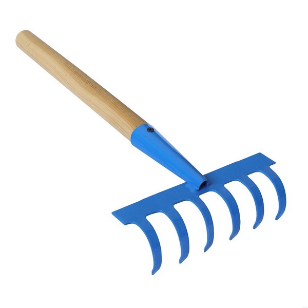 9. Грабельки крашеные, дерев. ручка, 500 мм, 6 зуб