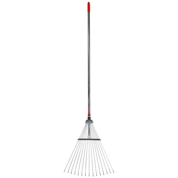 Грабли веерные изготовлены из холоднокатаной стали с последующей закалкой. Металлический черенок с пластиковой ручкой. Имеют 15 зубцов, механизм регулирования рабочей поверхности от 180 до 600 мм. Зубцы изготовлены из качественной упругой проволоки, что позволяет им достаточно плотно прилегать даже к неровным поверхностям, чем обеспечивается качественный результат работы. Применяются для уборки газонов. Данная модель с легкостью соберет опавшие листья с деревьев, скошенную траву. Грабли имеют малый вес, благодаря чему их могут использовать длительное время без усталости. Очень легкие и удобные в работе, грабли веерные это незаменимый помощник в частном секторе и на даче.