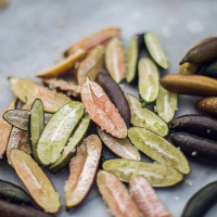 Citrus australasica - уникальное цитрусовое растение, широко известный как пальчиковый лайм (или лаймовая икра или цитрусовая икра), это вид цитрусовых, который ценится за его уникальную мякоть, состоящую из маленьких сферических пузырьков, похожих на икру. Происходит из субтропических лесов восточной Австралии.