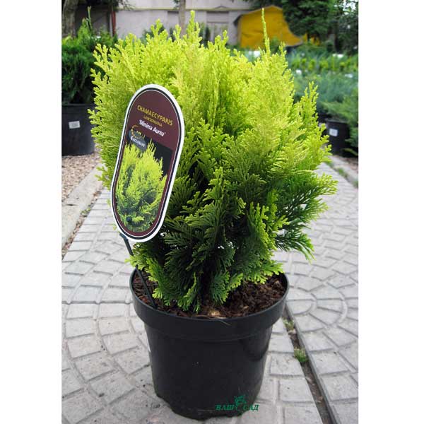 Кипарисовый кустарник, с уплощенной округлой кроной, достигает в возрасте 10 лет около 0,5 м высоту и 1м ширины. Характерные побеги уложены веерообразно, молодые коричнево-пурпурные, позже зеленые, зимой коричневатые.