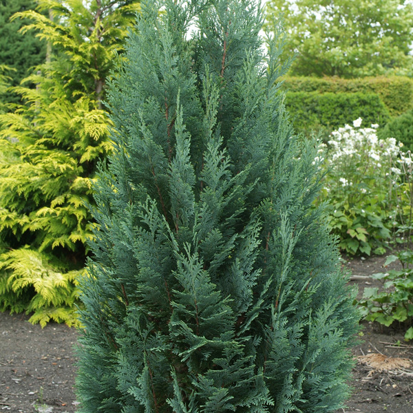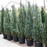 Chamaecyparis Lawsoniana "Columnaris" быстрорастущее дерево в форме прямой колонны. В возрасте 10 лет достигает 3-4 м высоты. Хвоя серо-голубая, ветви направленны вертикально вверх. Нетребовательно к почве и климату, выносливо в условиях загрязненной городской среды.Считается одним из наиболее морозоустойчивых сортов кипарисовика. Рекомендуется сажать отдельно и как элемент садовых композиций.Высота растения 250+ см