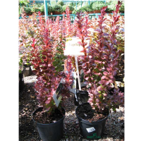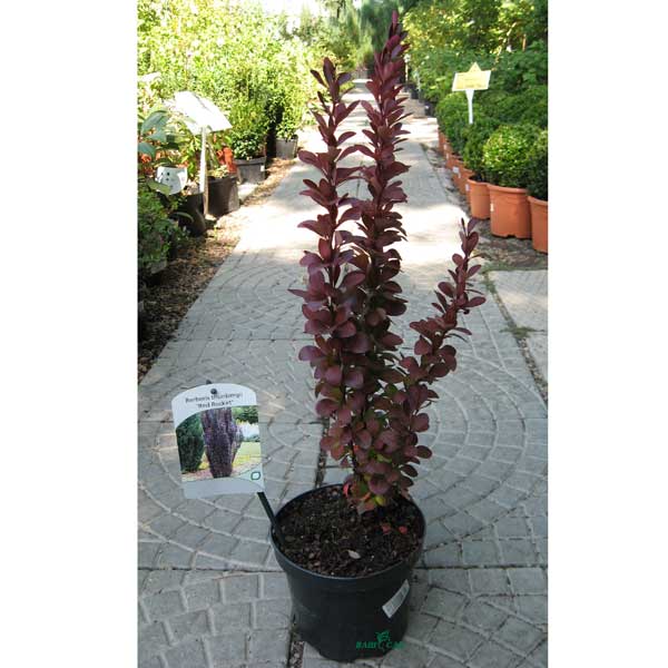 Общая характеристика: Колючий кустарник с многочисленными побегами, высота 2-3м, ширина 2-3м. Изначально вертикальный, затем широко округлый или воронковидный. Листья - коричневые, красные или малиново-красные, наиболее интенсивная окраска при распускании листвы, осенью оранжево - карминный цвет листвы. Плоды - к осени на кустарнике образуются многочисленные блестящие, красные ягоды, которые очень долго сохраняются на кустарнике.