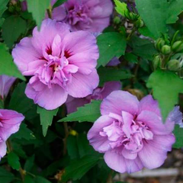 Общая характеристика: Конусовидный кустарник средней величины, 1.5-2 (3)м высотой, 1-1.5 (2)м шириной, ветви направлены вверх, медленнорастущий. Цветы - живописные, крупные, подобны мальвам, цветет обильно и продолжительно. Срок цветения зависит от сорта - начиная с конца июня до сентября. Плоды - неприметные, коричневатые капсулы - семенные коробочки. Листья - яйцевидные и трехлопастные, зеленые, позднее распускание, в осенний период бледно - зеленая окраска. Корневая система стержневая.