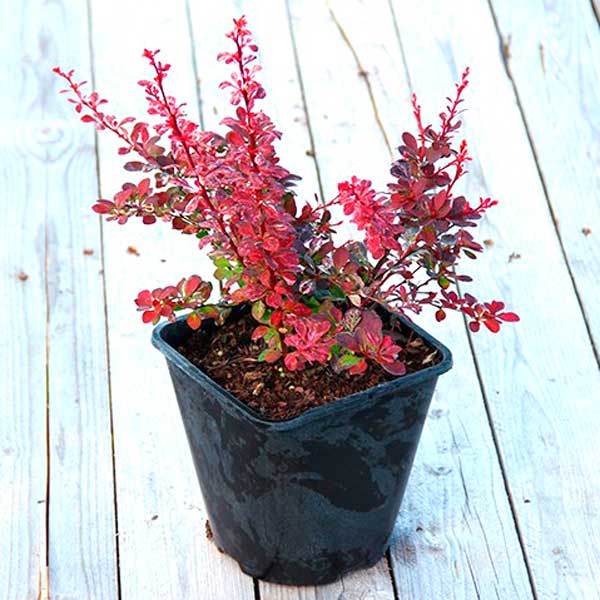 Барбарис Тунберга "Rosetta" - колючий кустарник с оригинальными, пестрыми листьями. Крона развесистая с поникшими ветвями. Лист красный с белыми и розовыми пятнышками.Солнцелюбив, выносит полутень.К почвам не требователен, предпочитает щелочные почвы.Рекомендуется к использованию как в одиночных, так и в групповых посадках.Высота растения: 15-20 см.