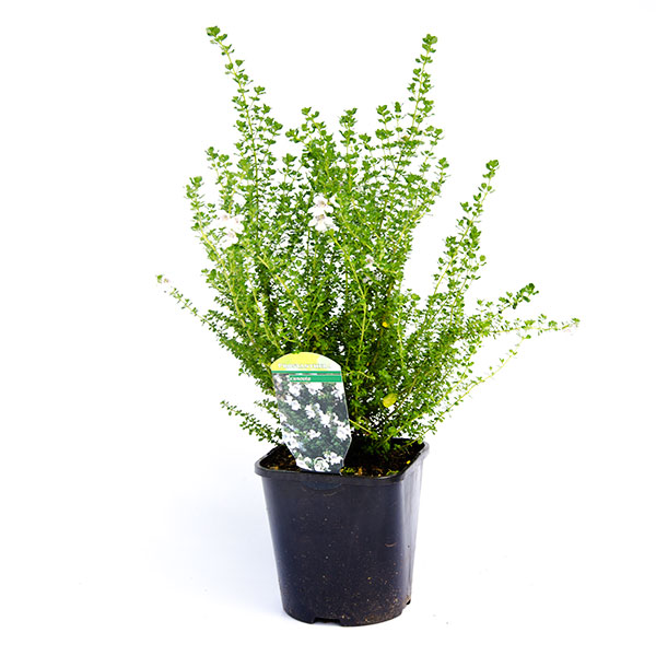 Простантера клиновидная - приземистый вечнозеленый кустарник с прямыми стоячими стеблями, на которых короткие черешки держат мелкие душистые листья. Листья вогнутые по средней жилке. Соцветия - кисть. Цветки - с одной осью симметрии, чашевидные, венчик иэ четырех лепестков. Цветки белой, нежно-лиловой окраски.