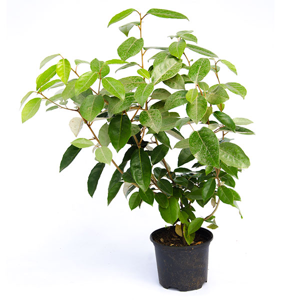 Вечнозеленый кустарник до 3 м в высоту, листья эллиптические, кожистые, верхняя сторона глянцевитая, темно-зеленая, нижняя серебристо-серая. Цветы - небольшие, белые, ароматные, собраны по 3-6 в соцветия, появляются в октябре.