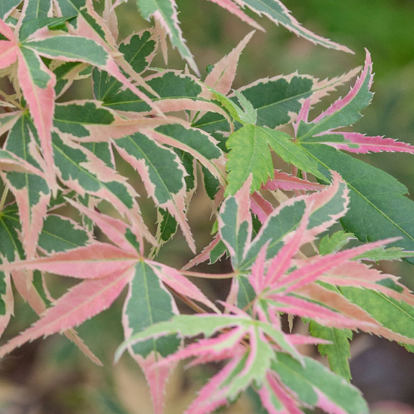Acer palmatum Taylor - редкий, медленнорастущий японский клен, идеально подходящий для небольших садов и контейнеров. Отличается эффектными весенними листьями ярко-розового цвета, которые позже меняют оттенок на зелёный с белой каймой. Достигает 2-3 метров в высоту, предпочитает полутень и влажную почву.
