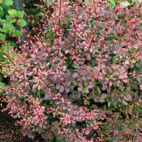 отличается высокой декоративностью благодаря необычной оригинальной окраске листвы. Колючий, раскидистый, пурпурный кустарник с великолепными пестрыми молодыми листочками, распускающимися на молодых побегах, очень освежающими темный цвет всего растения. Достигает до 1,5 м в высоту и еще больше в диаметре. Оригинальный окрас листьев в пурпурный цвет с белыми и серыми пятнышками выделяет барбарис Роуз Глоу среди множества других растений и делает его одним из самых популярных и желанных барбарисов в частных коллекциях и садах.