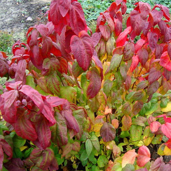 Листья: До 15 см длиной, продолговато-яйцевидные, зубчатые по краям, вздутые, слегка морщинистые, молодые приросты красные, затем зеленеют, осенью оранжево-красные. Листья на верхоцветах красной окраски весь период.