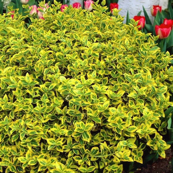 - чрезвычайно распространенный сорт. Это компактный медленно разрастающийся кустик в высоту до 30 см. Листья небольшие – 2 см, остролистные. Высоко ценится за окраску: сами листья яркие изумрудные, а их окантовка золотистая, желтая. Осенью растение меняет окраску, становится красновато-бурым.