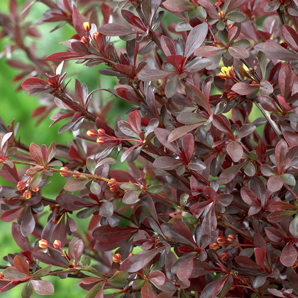 Побеги: красные, позднее тёмно-красные, гранёные, с одиночными шипами, как у всех барбарсов тунберга.