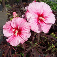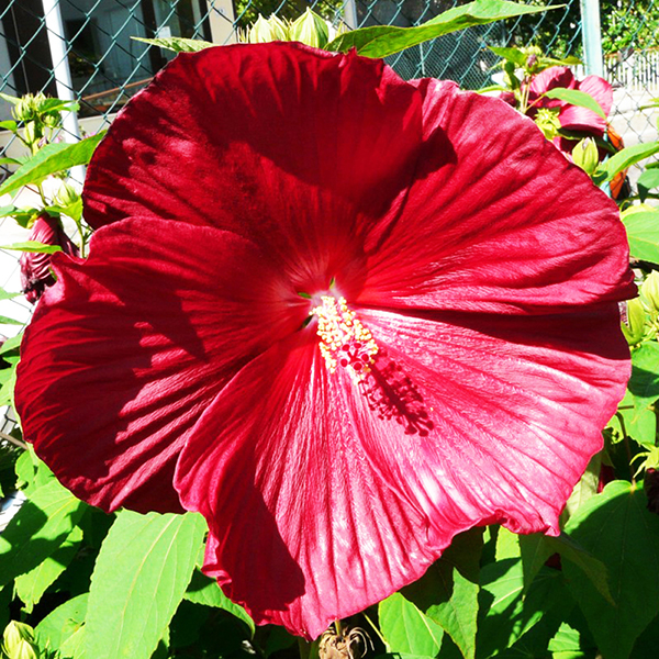 Гибискус травянистый - многолетнее растение семейства Мальвовых, гибрид трех американских сортов: болотного, красного и остролистного (отсюда второе название - гибридный). Имеет хорошо развитую корневую систему с заглублением 20-40 см. Такая глубина позволяет закрытой корневой системе благополучно пережить летнюю засуху и зимнюю стужу. Надземная часть гибискуса - высокие толстые стебли, покрытые крупной светло-зеленой или темно-зеленой листвой различной формы (в зависимости от сорта). Осенью надземную часть полностью убирают, а корневую систему на зиму укрывают. Весной с наступлением теплого сезона гибискус вновь отрастает от стойко перезимовавших мощных корневищ, начиная очередной цикл развития новыми сильными побегами.