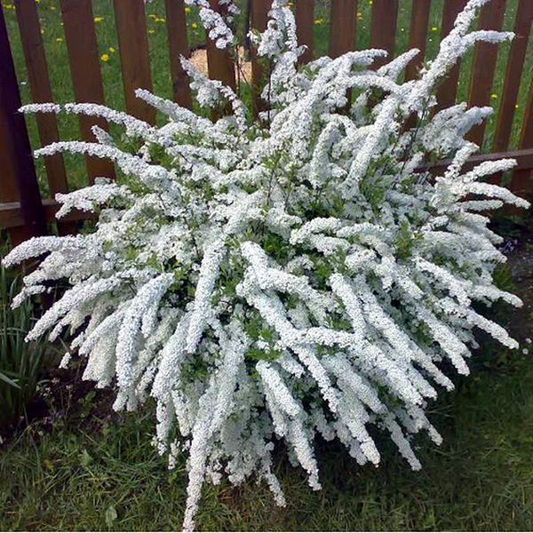 В пору цветения, которая приходится на май и июнь, спирея пепельная преображается, сплошь покрываясь мелкими белыми цветочками, напоминающими пушистый снег. Цветки махровые, собраны в щитовидные, плотно посаженные, соцветия. На протяжении четырех недель от цветущей спиреи невозможно оторвать взгляд, и к ней устремляются пчелы, привлеченные приятным ароматом.