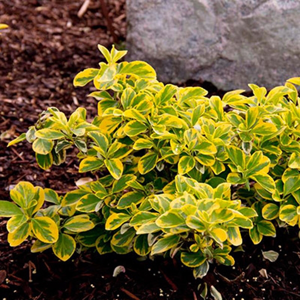 - чрезвычайно распространенный сорт. Это компактный медленно разрастающийся кустик в высоту до 30 см. Листья небольшие – 2 см, остролистные. Высоко ценится за окраску: сами листья яркие изумрудные, а их окантовка золотистая, желтая. Осенью растение меняет окраску, становится красновато-бурым.
