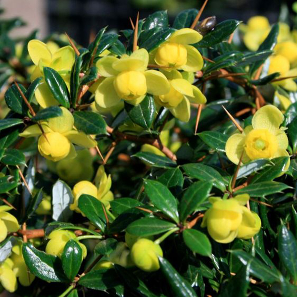 Вечнозелёный кустарник высотой и шириной 90 см. Очень плотный, колючий. С его помощью можно быстро создать низкую непроницаемую живую изгородь высотой 60-90 см. Цветки мелкие, светло-жёлтые. Цветение в мае, более обильное на солнечном месте. Листья длиной 3 см, яркие, глянцевые, тёмно-зелёные, снизу серо-белые, осенью - красные. Плоды сине-чёрные, появляются в июле. Место солнечное или полутенистое. Почва дренированная. Зона 5 (до -23?С). Теневынослив.