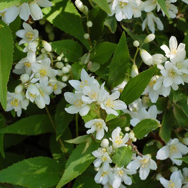Дейция изящная - из рода красивоцветущих кустарников семейства гортензиевых, высотой до 1,5 м с тонкими изогнутыми ветвями. Листья летом - светло-зеленые, осенью - желтых тонов. Многочисленные изящные соцветия обильно покрываают кустарник. Цветы белоснежные, собраны по 30-40 штук в кисти длиной до 9 см. Цветёт рано и обильно, с мая по июнь. Растет быстро, теплолюбива, засухоустойчива и светолюбива. К почве нетребовательна. Цветёт на побегах прошлого года. Предназначена для небольших садов, на солнечные и в полутенистые места.
