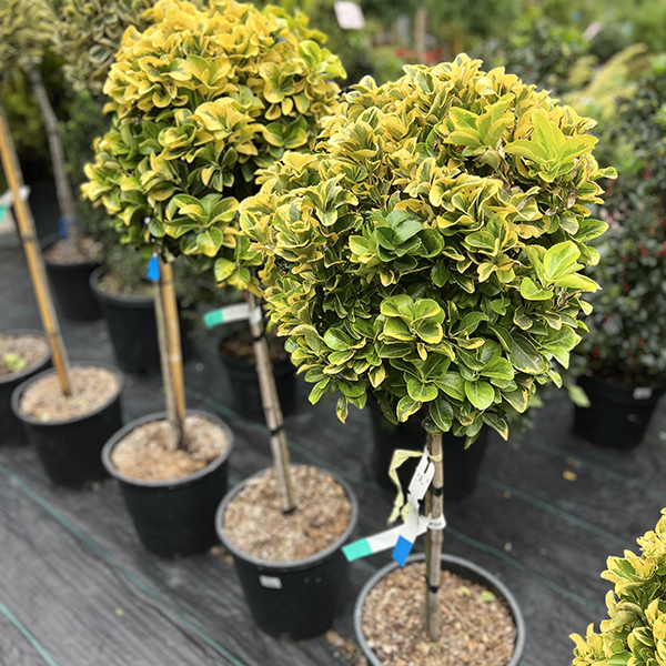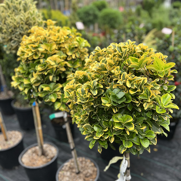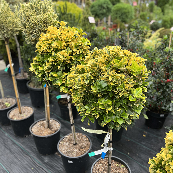 Euonymus japonicus Elegantissimus Aureus - вечнозеленый куст с темно-зелеными листьями, которые имеют яркие золотисто-желтые края. Он декоративный круглогодично и хорошо растет на солнечных или полутенистых участках с хорошо дренированной почвой.