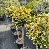 Euonymus japonicus Elegantissimus Aureus - вечнозеленый куст с темно-зелеными листьями, которые имеют яркие золотисто-желтые края. Он декоративный круглогодично и хорошо растет на солнечных или полутенистых участках с хорошо дренированной почвой.