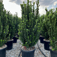 Euonymus japonicus Benkomasaki Erecta - вечнозеленый кустарник японского происхождения с колонновидной, плотной формой кроны, достигающий в высоту до 2,2 метров. Он отличается темно-зелеными блестящими листьями и подходит для создания живых изгородей, бордюров, стриженых форм и контейнерного выращивания на солнечных местах или в полутени при условии хорошо дренированной почвы. Плотно прилегающая к стеблям листва, которая растет по всей длине ветвей, придает этому растению оригинальный вид.