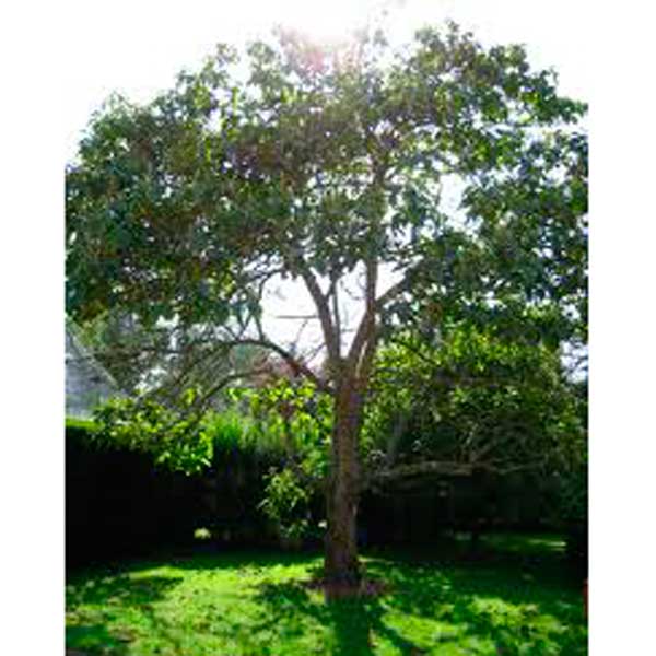 До 15 м в высоту и ширину, с толстыми ветвями, переносящее известь дерево с широкой кроной и супротивными листьями 40-50 см в длину и ширину.