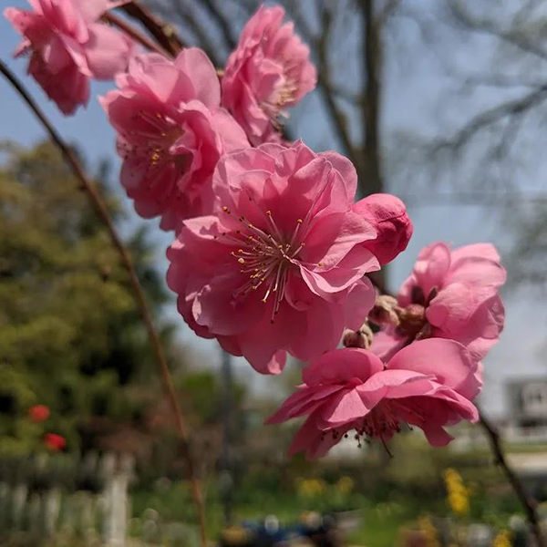 Prunus persica Pink Cascade – это декоративная, плакучая форма персика с ярко-розовыми, двойными цветами, появляющимися ранней весной. Цветение этого сорта является одним из самых первых и сигнализирует о начале весны, украшая ветки обильными цветами перед появлением листьев. Дерево растет до 3-4,5 метров в высоту и ширину, имеет умеренный темп роста и не плодоносит съедобными плодами.