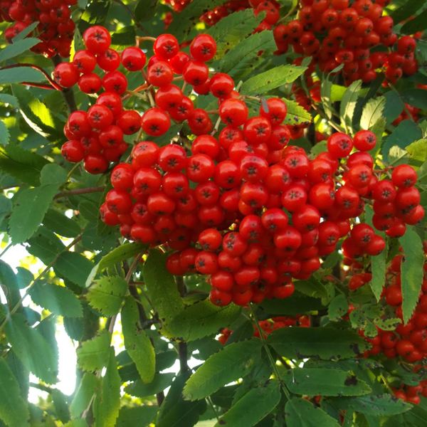 Рябина - вид древесных листопадных растений из рода Рябина семейства Розовые. Представляет собой средневысокое дерево, реже кустарник с ажурной округлой кроной. В высоту достигает 5-10 (12) м, в ширину 4-6 м. Кора желто-серая или светло-серо-коричневая, гладкая, блестящая. Молодые побеги серо-красного цвета, опушенные. Почки войлочно-пушистые. Листья очередные, достигают 20 см в длину, непарноперистосложные, состоят из 7-15 листочков, ланцетной или вытянутой формы, заостренные или зубчатые по краю, цельнокрайние в нижней части и пильчатые в верхней. Сверху листики зеленые, матовые, снизу – более бледные, опушенные. Осенью листья меняют свой цвет на золотистый и красный.
