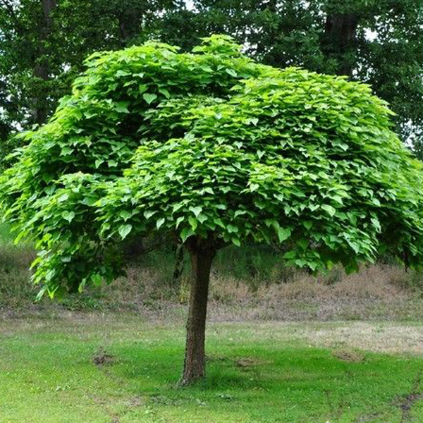 Катальпа бигнониевидная Нана - небольшое медленнорастущее дерево, в молодости крона округлая, очень плотная, с возрастом вершина уплощается и крона разрастается в ширину в два раза шире её длины. Чаще всего эту форму прививают на штамб, который может быть различной высоты, иначе растение преобразуется в форму кустарника. Является ценным экземпляром из-за небольшого роста и плотной шаровидной кроны.