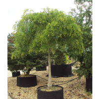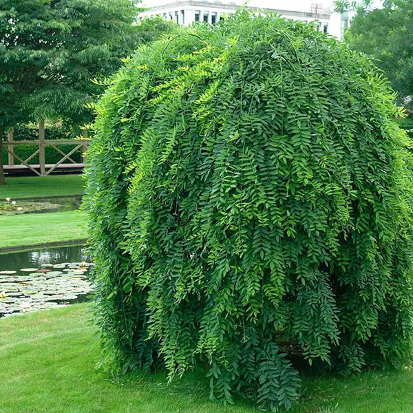 Sophora Japonica Pendula - листопадное дерево семейства бобовых, достигающее в высоту 25 м. Кора старых стволов темно-серая, с глубокими трещинами, молодые ветви и побеги зеленовато-серые, короткоопущенные. Листья непарноперистые, длиной 11-25 см. Цветки длиной 1-1,5 см, ароматные, в крупных рыхлых конечных метелках, достигающих в длину 20-30 см.