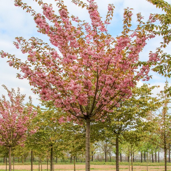 Взрослое дерево высотой около 10 м, с обратно конусовидной формой кроны шириной до 5 м. Листья овально-удлиненные крупные, ярко-зеленые, блестящие. Цветки густомахровые, ярко-розовые, в небольших соцветиях (по 2 - 6 шт.), ароматные. Соцветия располагаются по всей длине ветвей. Цветет 1 - 2 недели в конце апреля - начале мая. Сакура – дерево, которое высаживают ради его роскошного цветения. Плоды напоминают мелкую вишню, съедобные, кисловатые с горчинкой, для еды интереса не представляют.