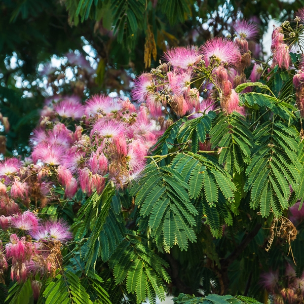 Особенности: Бутоны альбиции не только волшебно выглядят, но и незабываемо пахнут. Аромат напоминает смесь фиалки и малины, держится очень долго и разносится по всему саду.