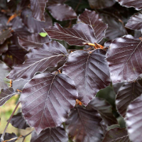 Fagus sylvatica Atropunicea - листопадное, величественное дерево с округлой кроной, формой ширкого конуса и оригинальной окраской листьев, со стволом, идущим до самой вершины, скелетные ветви сильные и широкораскидистые, в природе у старых экземпляров свисают до самой земли.