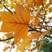Листва: Необычная, лироподобная. Подобной листвы нет ни у одного дерева. Листья плотные, с глянцевой поверхностью. Цвет меняют в зависимости от времени года: летом - темно-зеленые, осенью - ярко-желтого или оранжевого оттенка.
