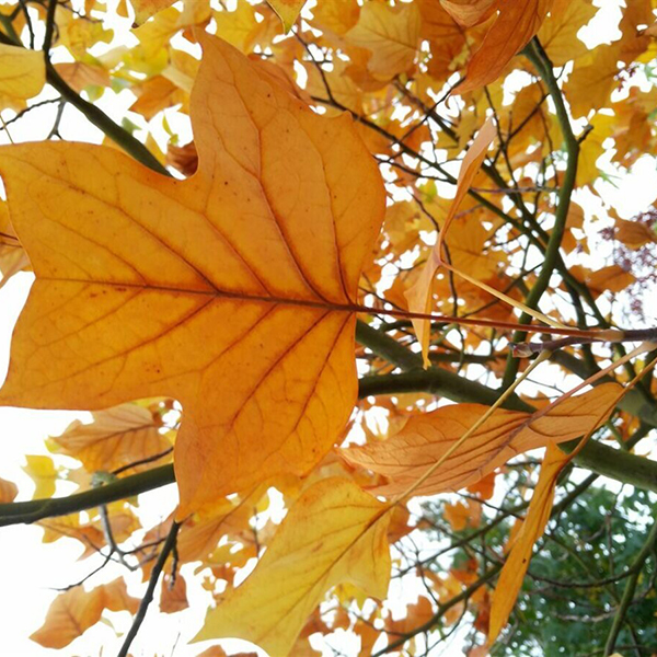 Листва: Необычная, лироподобная. Подобной листвы нет ни у одного дерева. Листья плотные, с глянцевой поверхностью. Цвет меняют в зависимости от времени года: летом - темно-зеленые, осенью - ярко-желтого или оранжевого оттенка.