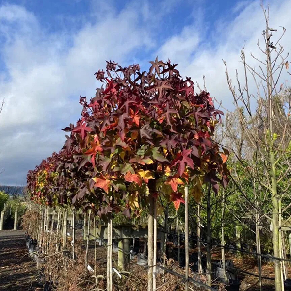 Liquidambar styraciflua Gum Ball – компактное, декоративное дерево с идеально шаровидной кроной, которая формируется естественным путем. Осенью очаровывает яркими оттенками красного, оранжевого и пурпурного. Медленный рост и неприхотливость делают идеальным для садов, аллей и городских просторов. Декоративная кора и необычные плоды придают уникальность.