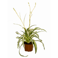 Хлорофитум (Chlorophytum) - травянистое, лиственное, цветущее растение семейства Спаржевые. Этот цветок считается самым неприхотливым и легким в уходе. Отлично развивается в абсолютно любых условиях. Длинные полосатые листья превосходно справляются с декоративной функцией, а побеги с новыми кустиками придают растению особо удивительной формы.