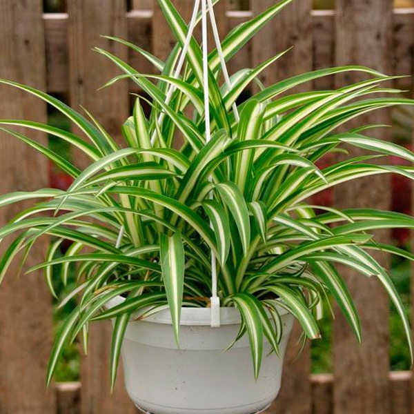 Хлорофитум (Chlorophytum) - травянистое, лиственное, цветущее растение семейства Спаржевые. Этот цветок считается самым неприхотливым и легким в уходе. Отлично развивается в абсолютно любых условиях. Длинные полосатые листья превосходно справляются с декоративной функцией, а побеги с новыми кустиками придают растению особо удивительной формы.