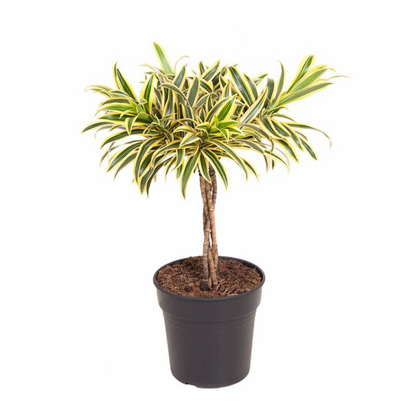 Драцена Song of India (Dracaena reflexa Song of India) - це декоративна кімнатна рослина з вузьким, вигнутим, зеленим листям із яскравими жовтими або кремовими смужками. Вона невибаглива у догляді, але вимагає яскравого розсіяного світла (непрямих сонячних променів), помірного поливу та температури в межах +18-25 градусiв влітку і не нижче +12 взимку.