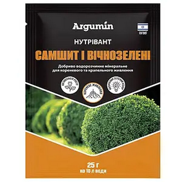 Удобрение Нутривант Самшит и вечнозеленое водорастворимое минеральное для корневого и капельного питания на протяжении всего вегетационного периода. Благодаря своему сбалансированному составу макро- и микроэлементов легко усваивается растениями и отвечает их физиологическим потребностям. Применение удобрения активизирует рост и полноценное развитие растения. Способствует улучшению декоративных свойств.