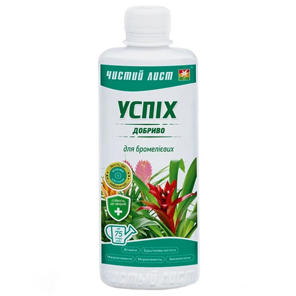 Удобрение "Чистый лист Успех" для бромелиевых – комплексная минеральная подкормка для всех видов комнатных растений. Содержит все необходимые макро и микроэлементы, доступной для полноценного питания растений форме. Благодаря использованию высококачественного сырья подкормка обладает высокой проникающей способностью через поверхность листа. Повышает стойкость к заболеваниям. Предотвращает развитие хлороза.