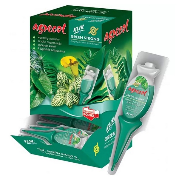 Green Strong – кондиционер для комнатных растений, специализированный и инновационный препарат, предназначенный для регенерации всех видов комнатных растений. Специальная формула стимулирует усвоение питательных веществ и улучшает устойчивость растений к заболеваниям. Регулярное использование улучшает состояние корневой системы, обеспечивая эластичность листьев и их соответствующий сочный цвет. Профессиональные, эстетические и готовые к применению аппликаторы упрощают применение удобрения.