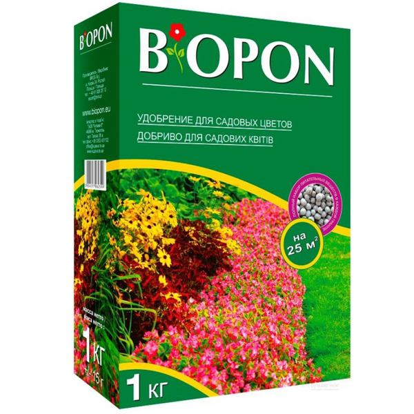 Удобрение в гранулах для садовых цветов Biopon - эффективное удобрение, которое поможет сделать Ваш сад цветущим, а декоративные растения крепкими и здоровыми. Калий, входящий в состав удобрения, способствует повышению устойчивости растений к неблагоприятным погодным условиям, в том числе готовит растение к зиме. Магний в составе удобрения способствует насыщеному зеленому окрасу листьев и ярким оттенкам соцветий.