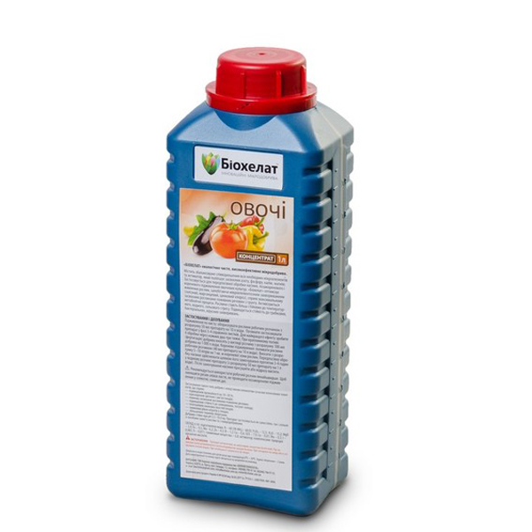 Действие: Биохелат “Овощи” оптимизирует питание растений, предотвращая микроэлементозные заболевания (железный, марганцевый, цинковый хлорозы). Активизируются метаболические процессы. Растения становятся более устойчивы к температурному, водному, солевому стрессу. Повышается устойчивость к грибковым, бактериальным, вирусным заболеваниям. Максимально увеличивается урожайность и качество плодов. Хелатная форма микроэлементов способствует ускорению цветения и завязи плодов, улучшению вкусовых качеств, снижению уровня нитратов, увеличению сроков хранения. улучшению цветения и опыления, развитию корневой системы и листьев.