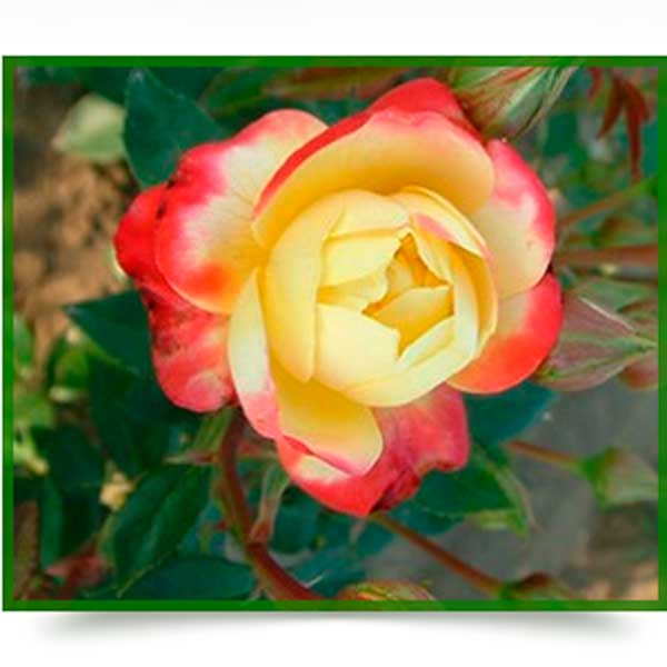 Аромат: слабый.Цветение: повторноцветущий.Цвет: желто-красный.Высота: 60-90 см.Размер цветка: 8-10 см.Устойчивость к мучнистой росе: средняя.Устойчивость к черной пятнистости: средняя.