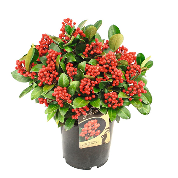 Skimmia japonica Obsession – это очаровательный, компактный вечнозеленый кустарник, который пленит садоводов пышным, густым ростам и впечатляющими блестящими листьями. Этот сорт особенно известен своей яркой сезонной красотой, с большим количеством привлекательных красных почек, которые появляются осенью и сохраняются в течение зимних месяцев. С приходом весны эти почки превращаются в ароматные, кремово-белые цветы, которые не только улучшают визуальную привлекательность затененных садов, но и привлекают разнообразных опылителей, делая его отличным дополнением к любому ландшафту.