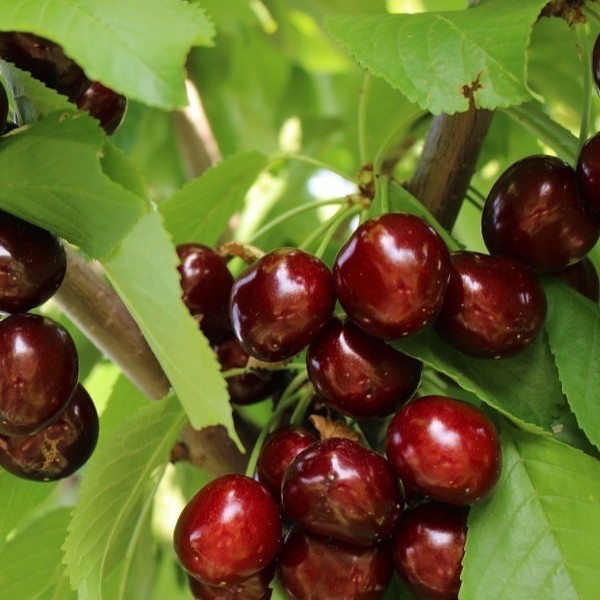 Плоды крупные, массой 7-9 г, округлосердцевидные. На вершине плода имеется крупная серая точка, а со стороны шва - бугорок. Плоды темно-красные, при полном созревании - почти чёрные, блестящие. Мякость тёмно-красная, с белыми прожилками, сочная. Вкус винно-сладкий. Дегустационная оценка свежих плодов - 4,5 балла.